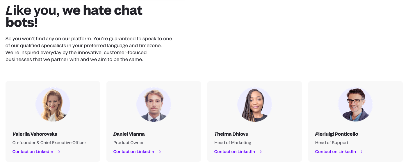 Оба ресурса работают с 2019-2020 года. Примерно тогда команда проекта и начала свою деятельность. Они подробно рассказывают о своем пути в специальном разделе на сайте. При этом они не скрываются, публикуют имени и фотографии, а также профиль LinkedIn.