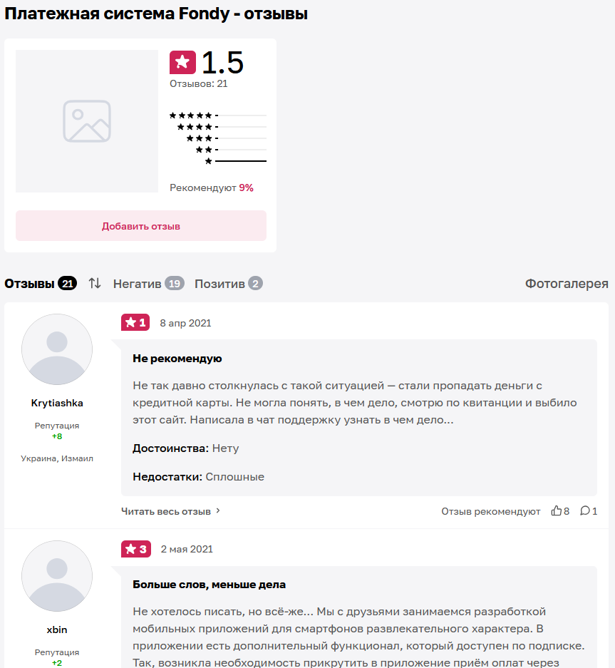 Отзывы о Fondy на независимых ресурсах в интернете смешанные. Это подтверждается рейтингами на двух крупных площадках: