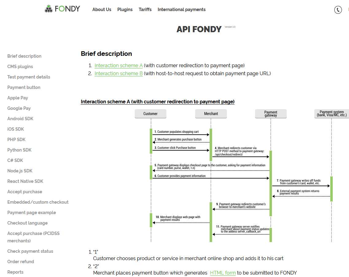 Еще полезная информация представлена на странице Docs Fondy Eu. Это техническая документация со всеми подробностями о работе платежного шлюза, его API, доступных SDK и так далее.