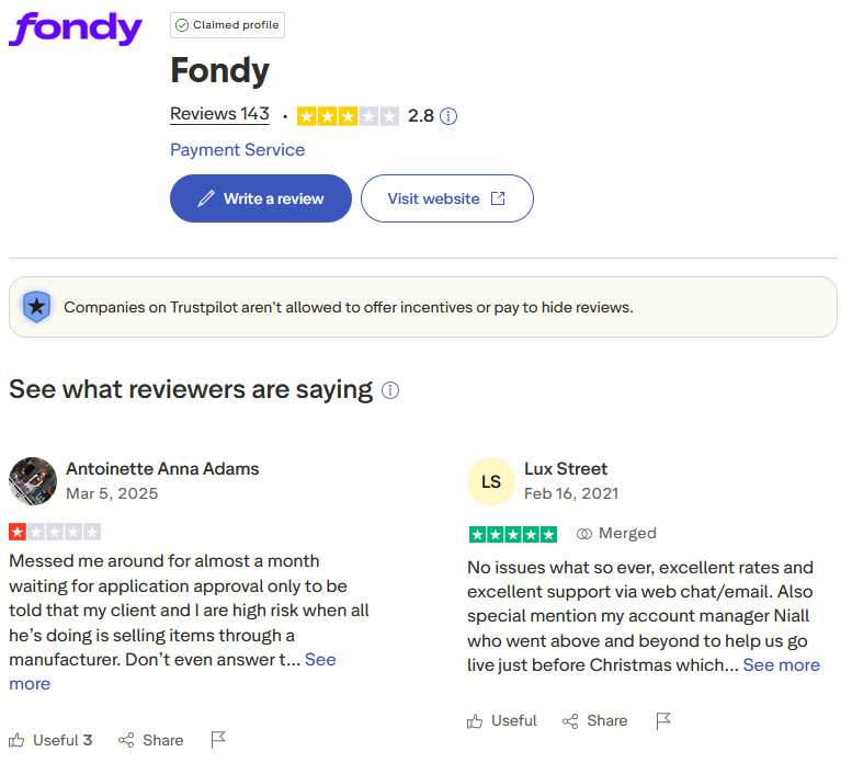 • TrustPilot — 143 оценки, 2.8 балла из 5;