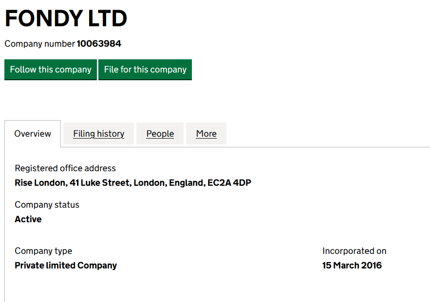 С юридическим аспектом FondyPayments все прозрачно, это реально зарегистрированная компания из Великобритании. Об этом свидетельствуют соответствующие записи в госреестре.