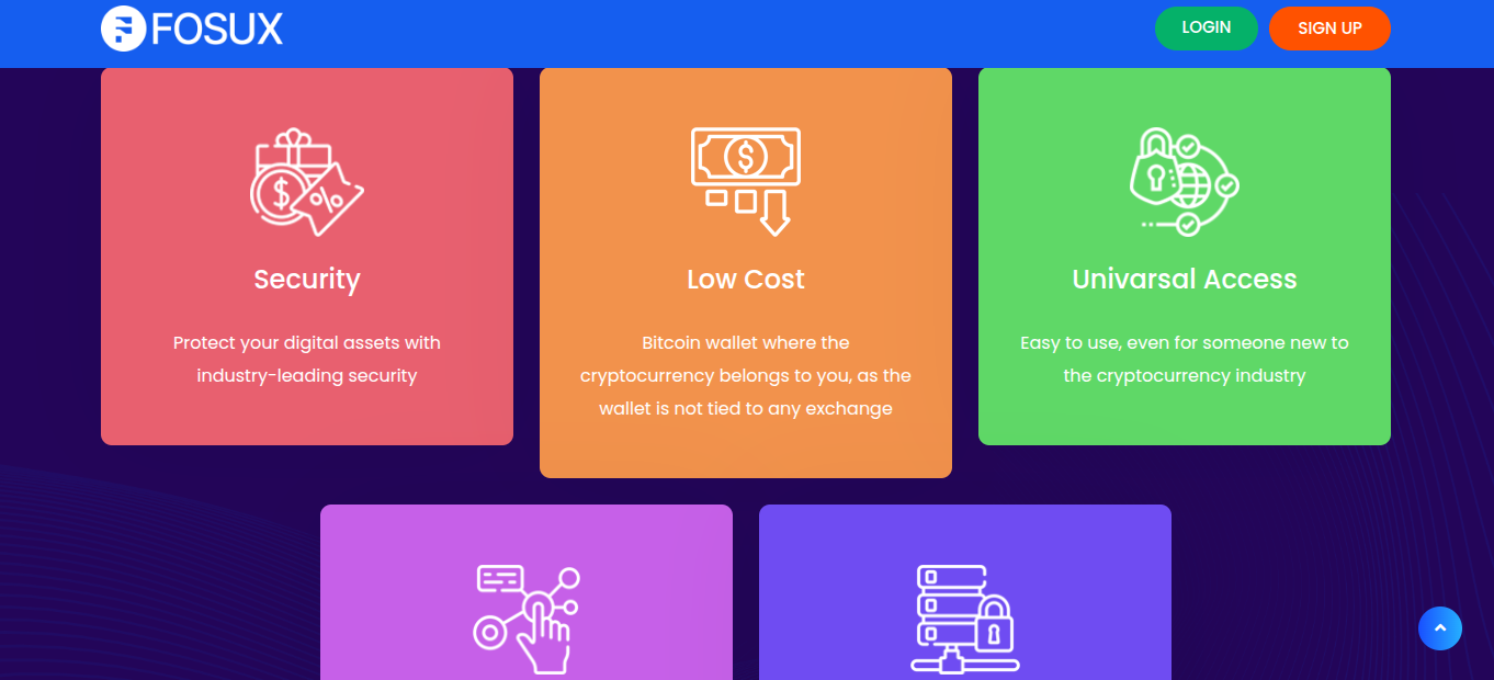 - Повышенная защищенность. Транзакции, а также персональная информация зашифрованы благодаря многоуровневой системе AES256. Следовательно, по утверждениям команды злоумышленники не смогут получить доступ к экосистеме Fosux com.