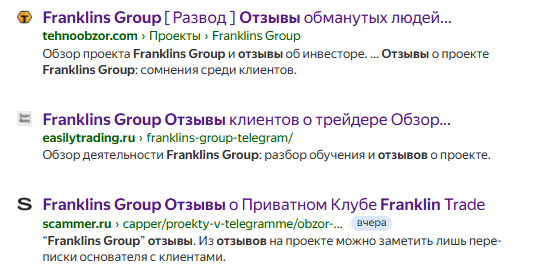 Независимых отзывов о Franklins Group в интернете нет. Это очень странно для проекта с шестилетней историей. Если бы люди реально зарабатывали деньги, они делились бы своим опытом. Писали бы на форумах и в социальных сетях. Рекомендовали бы своим друзьям и знакомым. Но вместо этого полная тишина.