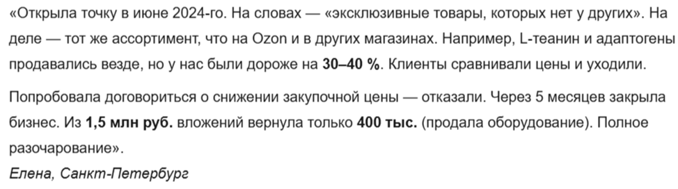 По франшизе «Лаборатория Биохакинга» предлагается много востребованных товаров, но даже налаженная система продаж не обеспечивает стабильный доход. Многие партнеры этого магазина столкнулись с финансовыми убытками. При проверке мы обнаружили серьезные недостатки: