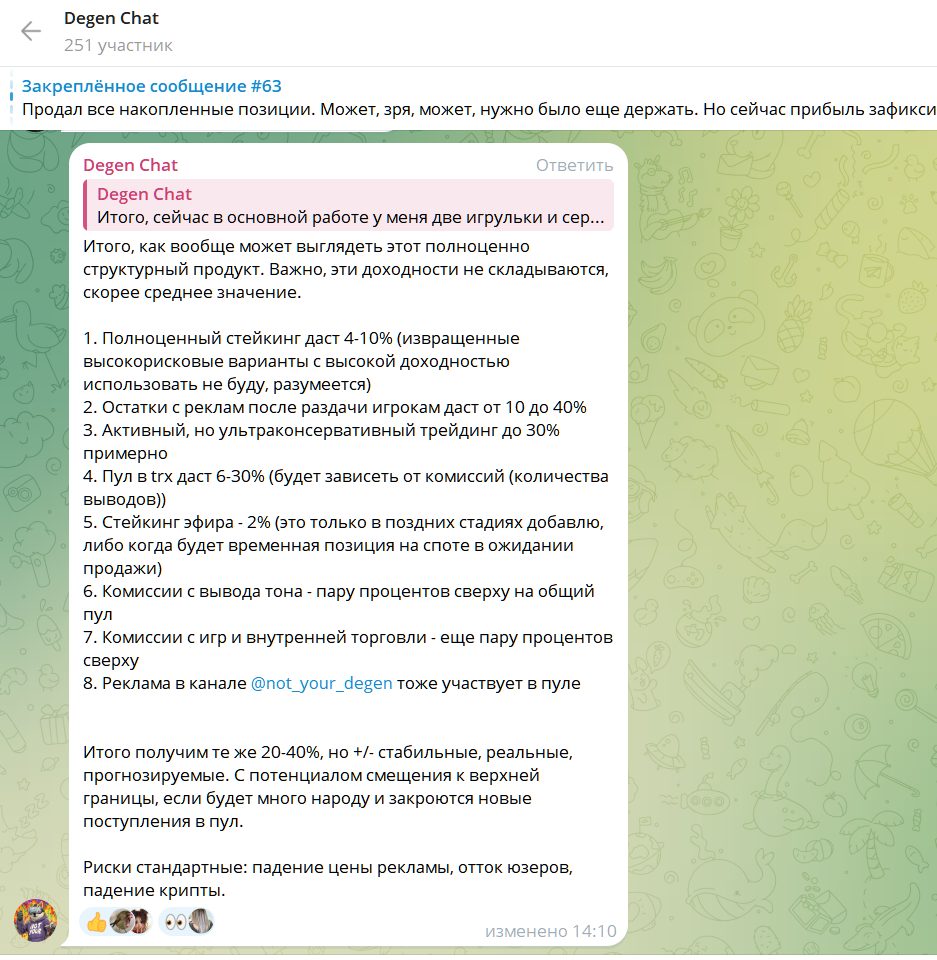 Разработчик Degen обещает в скором времени запуск стейкинга с выгодными условиями, но когда будет старт этого варианта заработка – неизвестно.