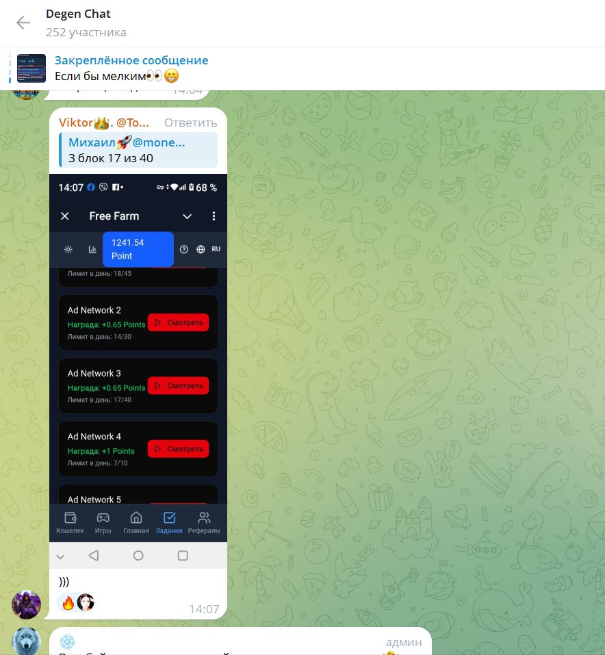 Так как скачивание неизвестных приложений на телефон небезопасно, очень высокий риск фишинга, кражи данных и паролей, при проверке мы ориентировались на записи чата Free Farm ТГ.