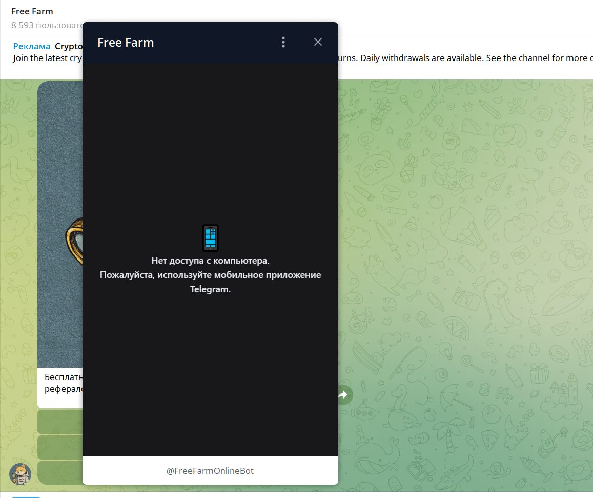 Обзор бота фармилки крипты Free Farm бот ТГ: условия, безопасность, проверка на скам, отзывы