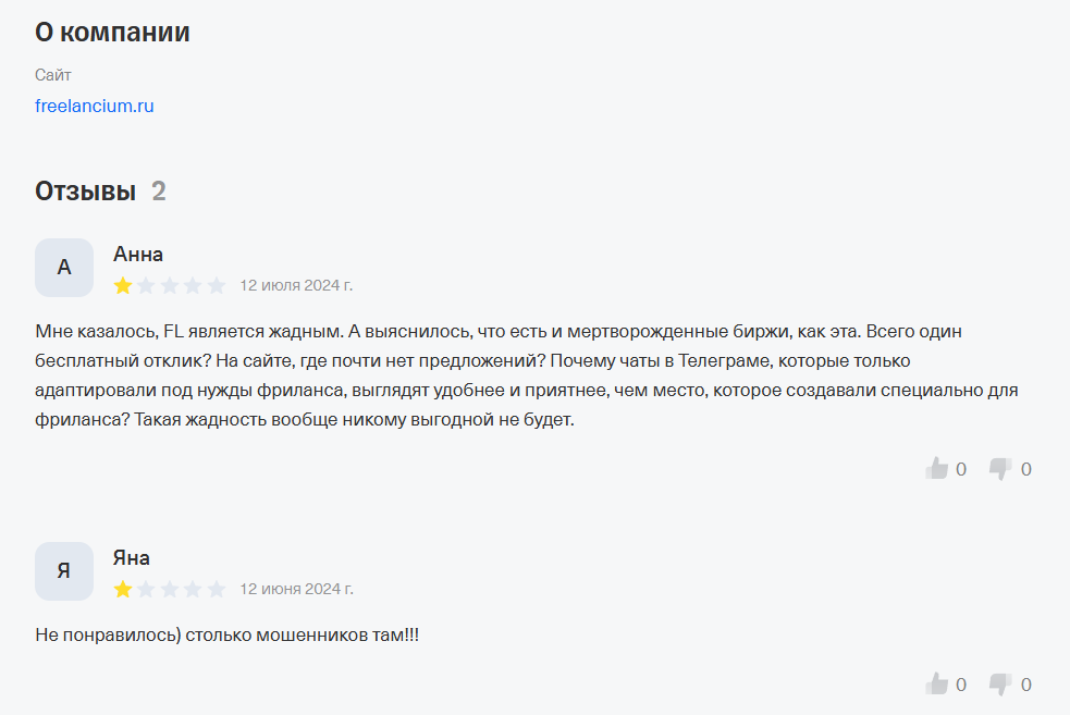 О бирже Фрилансиум отзывы в сети в основном негативные. Контору обвиняют в жадности: новым пользователям предоставляется всего один бесплатный отклик. Предложений на платформе нет, при этом нужно платить за каждое сообщение заказчику. Конкуренты предоставляют намного более выгодные условия, о чем тоже упоминается в отзывах о сайте Freelancium. Также есть жалобы, что на бирже орудует масса мошенников, которая получает работу и не готова за нее платить, а контора поддерживает эту тенденцию.