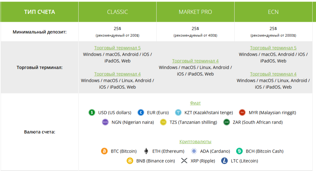 - Classic. Депозит от 25 долларов, 270+ инструментов, кредитное плечо 1:2 000, минимальный заказ 0,1 лота.