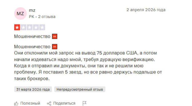 На профильных и сторонних веб-сайтах наша команда нашла отрицательные отзывы о фейковом брокере. В них трейдеры обвиняют посредника в отклонение запросов на вывод прибыли, блокировках учеток, выманивании денег посредством фальшивых предложений.