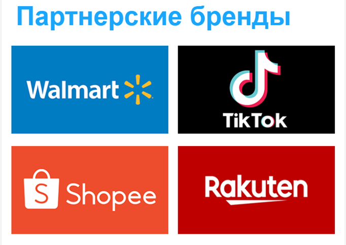 В перечне партнеров представлены Ozon, Walmart, Rakuten, Alibaba, Marks&Spencer. Но ни одного подтверждения партнерства нет. По факту, это всего лишь картинки с логотипами, не подтвержденные документально.