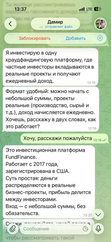 Если вам напишут в Тг или другом мессенджере по поводу FundFinance io, будут убеждать в реальности выплат и других преимуществах сервиса, мы не рекомендуем соглашаться на регистрацию. С высокой долей вероятности вы просто потратите деньги на депозит без шанса на вывод прибыли.