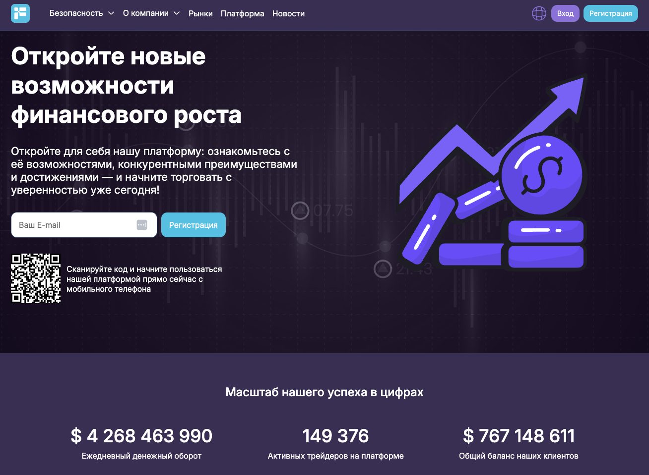 «Футемас» — брокер и криптовалютная биржа. Почти в шапке главной страницы сайта инвестиционной платформы сказано, что количество активных трейдеров на ней достигает 150 тысяч, а их общий баланс превышает 767 миллионов долларов.