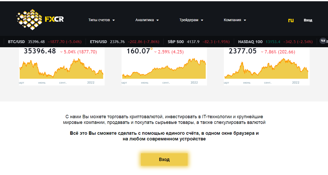 FXCR предоставляет услуги трейдинга через собственную торговую платформу WebTrader. Платформа поддерживает торговлю контрактами на разницу цен на различные классы активов. Услуги включают доступ к торговле с кредитным плечом до 1:1000. Минимальный размер депозита для открытия счета составляет $250.