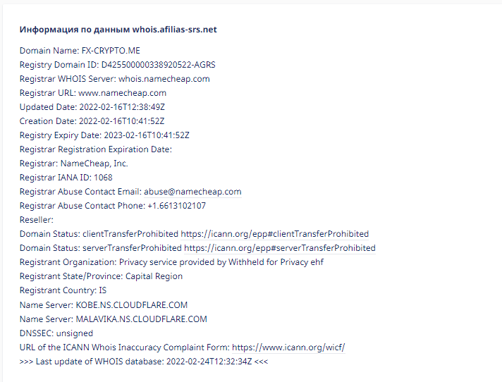 Дата регистрации проекта, которая заявлена на официальных ресурсах – 2018 год. Однако регистрация основного домена fx crypto org и зеркал приходится на период с января по апрель 2022 года.