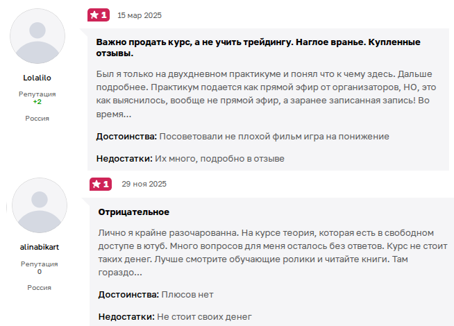 • в действительности граждане оставляют в интернете отрицательный фидбек о скам-академии.