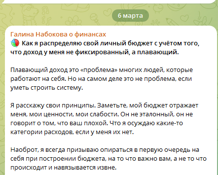 На тг-канале финансовый советник Nabokova демонстрирует публике особенности методик инвестирования и увеличения прибыли.