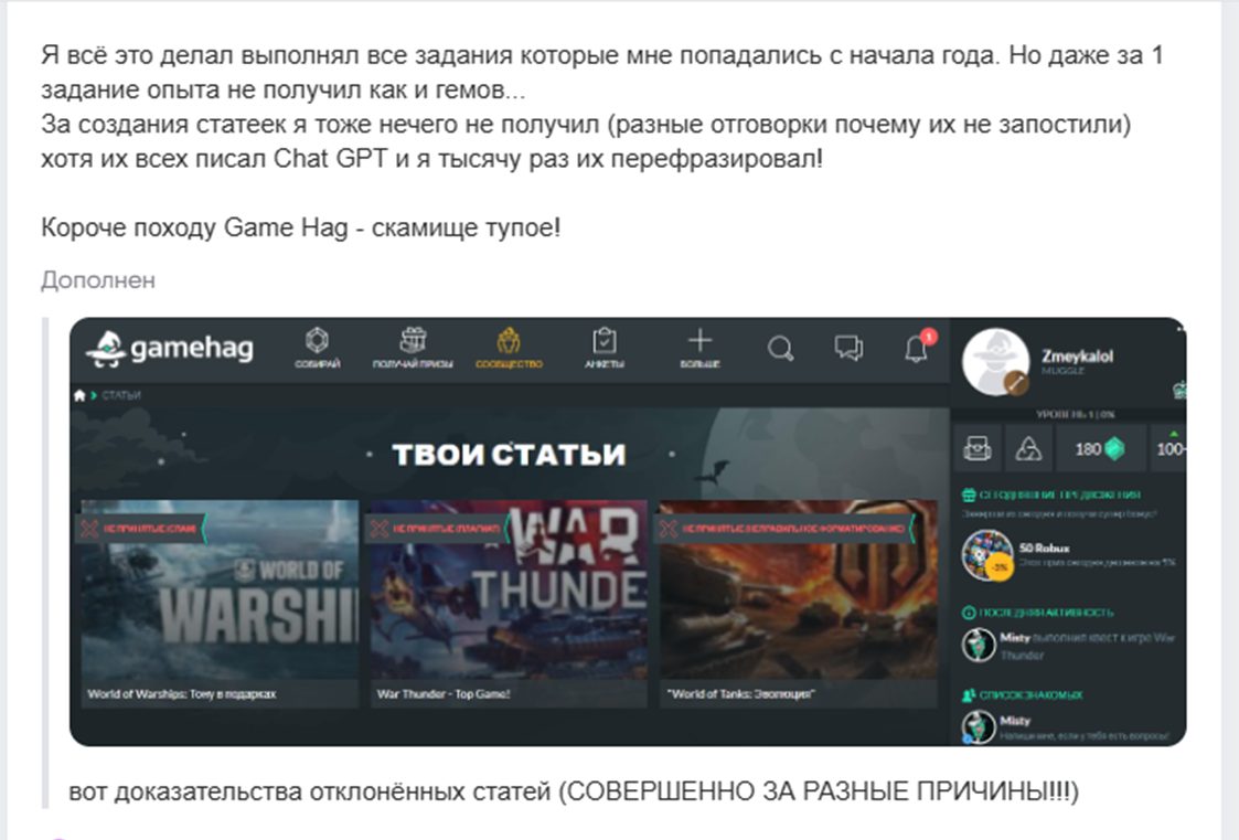 Игроки утверждают, что каждый раз руководство «Геймхаг» выбирает разные причины, чтобы отказать в выводе средств.