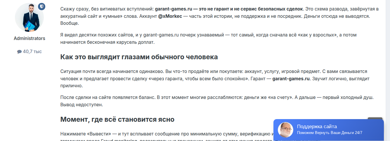 Отзывы о гаранте «Гарант Геймс ру»