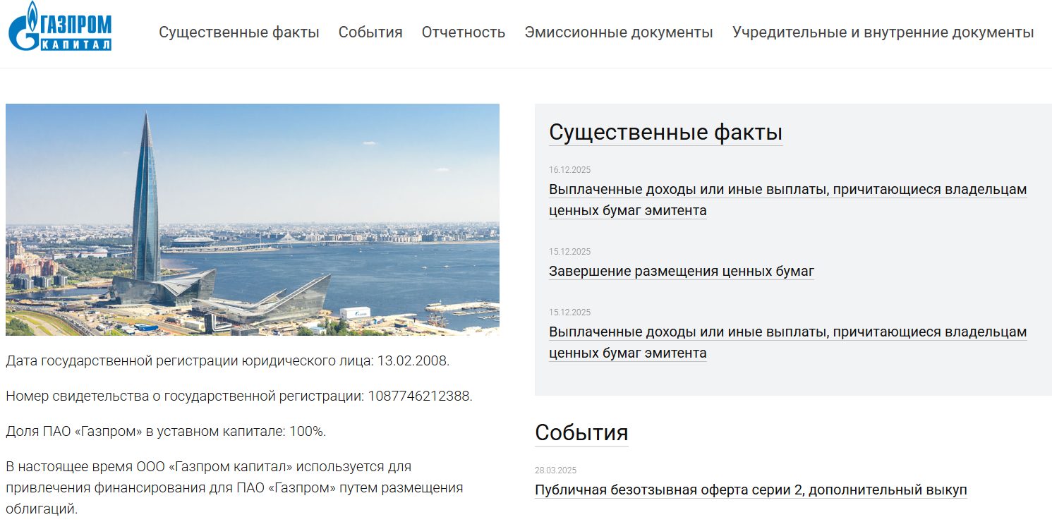 Газпром Капитал — дочерняя компания российского Газпрома, которая отвечает за выпуск его ценных бумаг. Она не принимает деньги от клиентов, а занимается только обслуживанием родительской структуры.