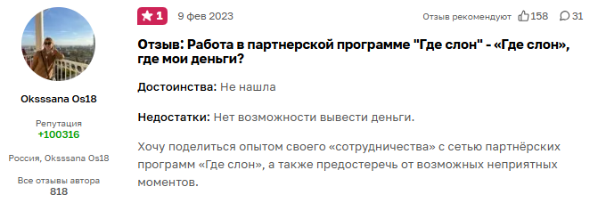 - В отзывах о «Где Слон» описываются случаи задержки с переводом средств, что показывает уязвимость маленьких партнерских аккаунтов: если рекламодатель не подтверждает заказы, веб-мастер фактически остаётся без возможности вывести заработанное.