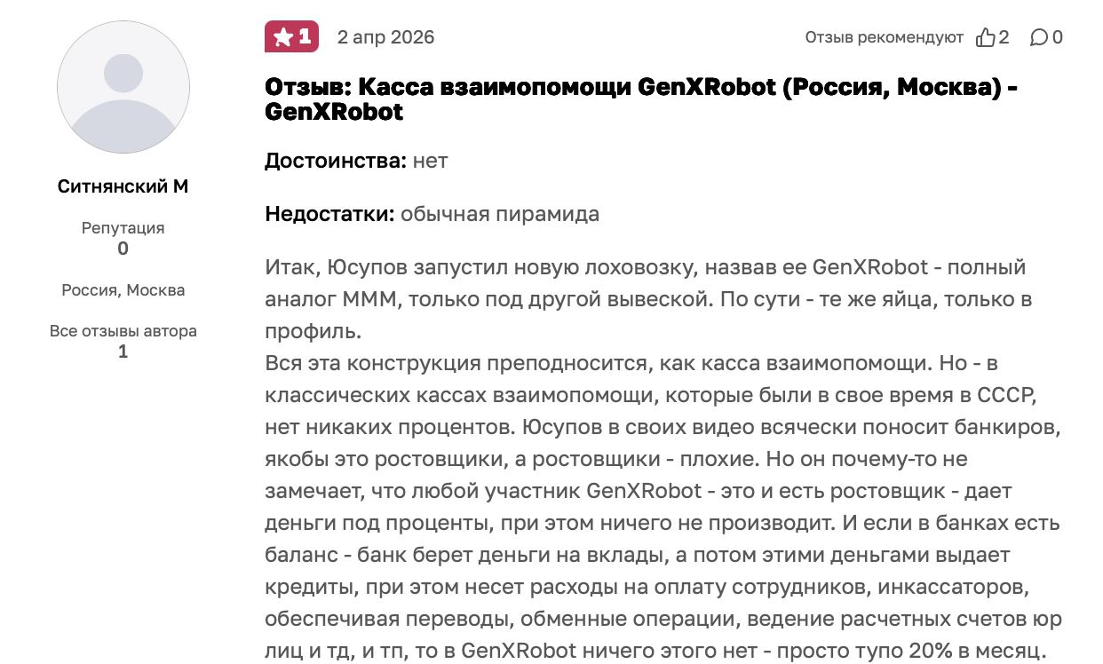 В адрес телеграм-бота и проекта GenXautobot критики очень много. Люди называют проект обычной пирамидой, проводя прямые параллели с МММ. Они отмечают, что под видом «взаимопомощи» скрывается классическая схема сбора денег.