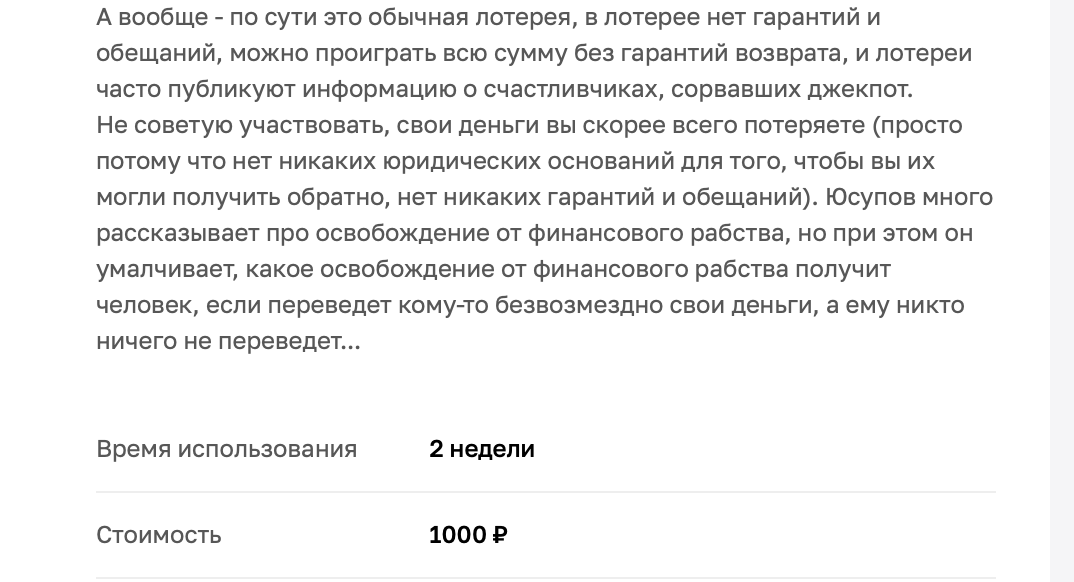 Авторы отзывов часто указывают на то, что схема работает только пока приходят новые люди, и советуют держаться подальше.