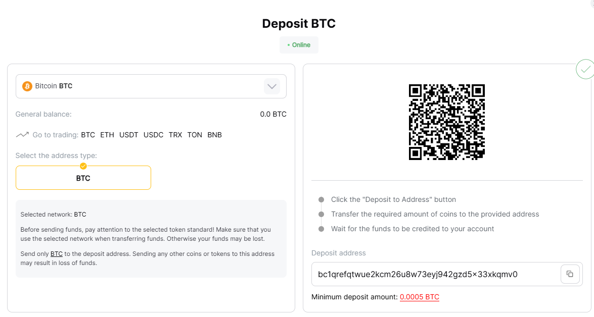 • нажать на “Deposit to Address”;