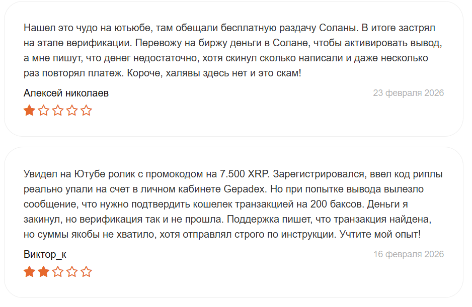 В ходе анализа биржи Gepadex не было найдено подтверждений того, что кто-то смог вывести с нее заработанные средства. Более того, были обнаружены и другие признаки, характерные для скам-площадок: