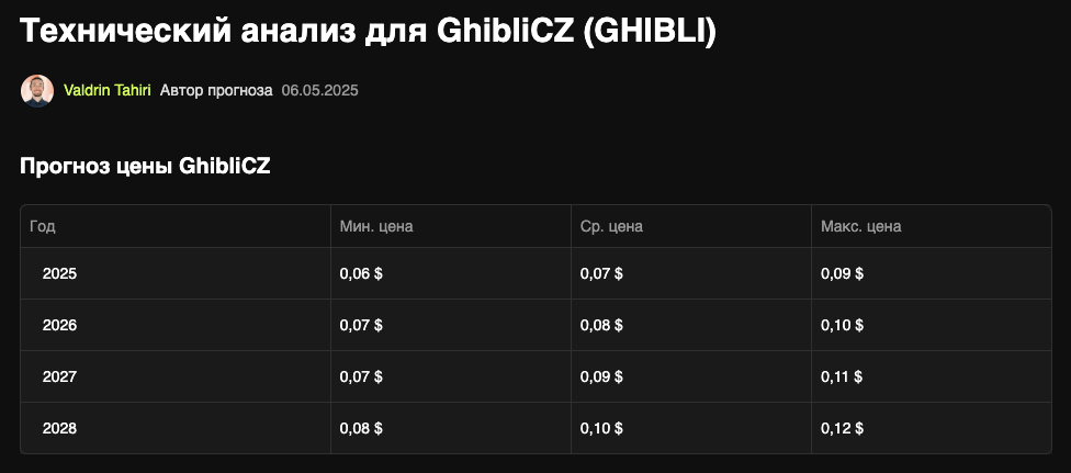 На 6 мая 2025-го года крипта Ghibli стоит около 0,0036 долларов. График цены токена продолжает оставаться нисходящим.