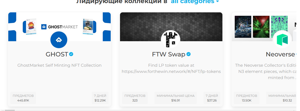 На сайте можно покупать NFT на основе блокчейна NEO или Phantasma. Доступны функции поиска коллекций по разным параметрам, продажа собственных токенов и многое другое.