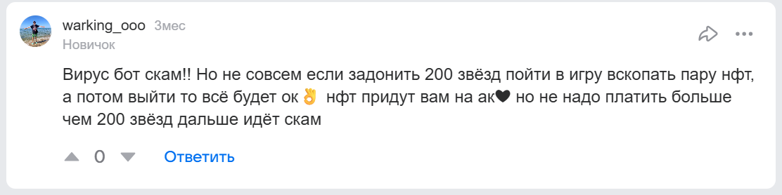 В сети очень мало отзывов о проекте, в чате негатива нет, но его могут удалять модераторы. На форумах пользователи пишут, что узнали об игре, так как бот Gift Relayer VIRUS подарил подарок, для активации которого нужно перейти в приложение и пополнить счет звездами, то есть активировать воскрешение. Некоторые игроки пишут, что VIRUSgift скам, вывода подарков и звезд нет. Другие говорят, что им дошли гифты, но с задержкой.