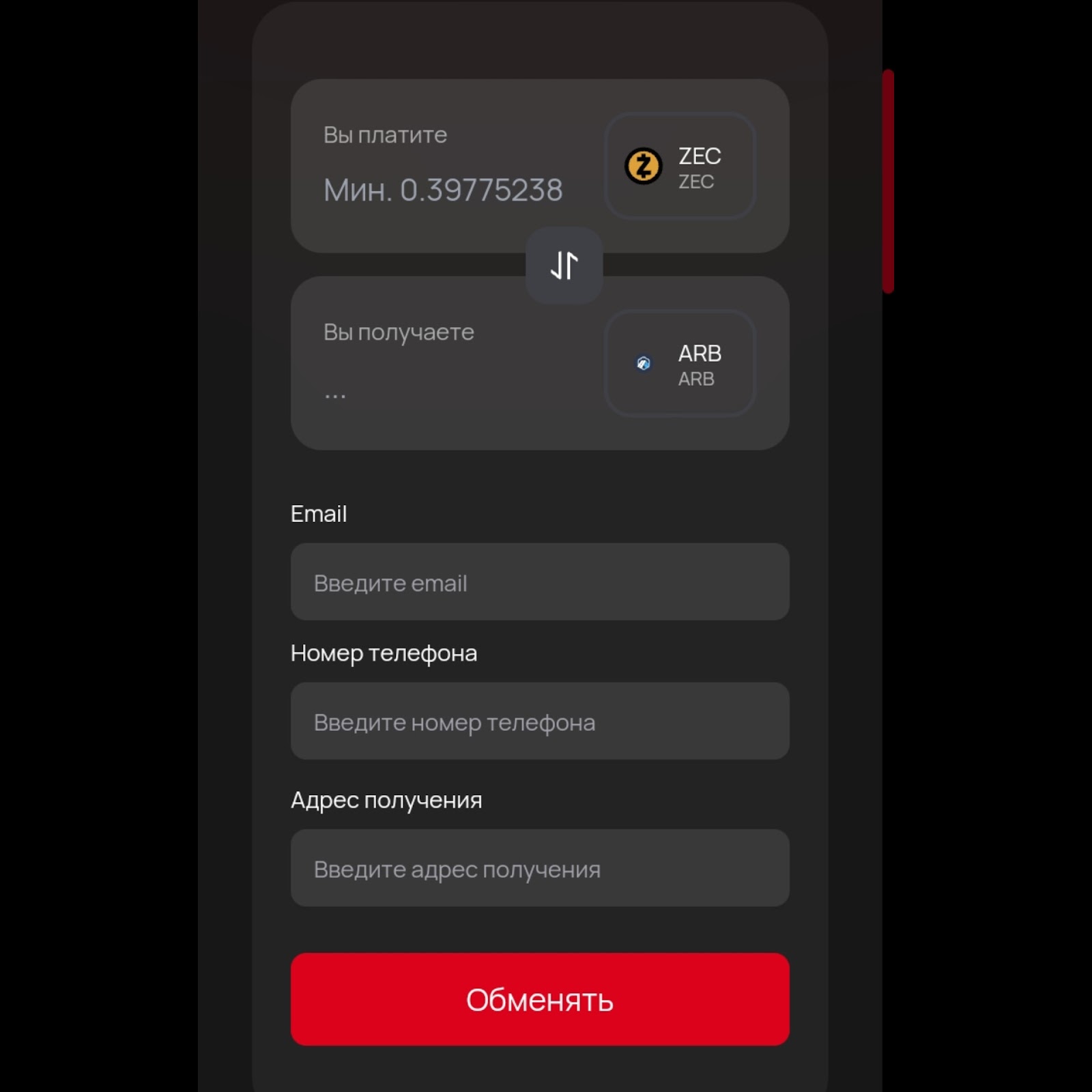 Сервис установил такие минимальные суммы для обмена: