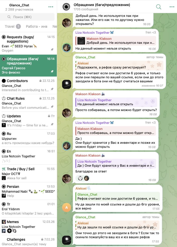 Возможность оставлять комментарии под постами на тг-канале Glance Game отключена. Тем не менее, участники сообщества могут общаться между собой. Для этого предусмотрен аккаунт Glance Chat.