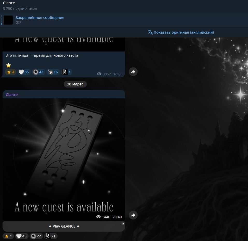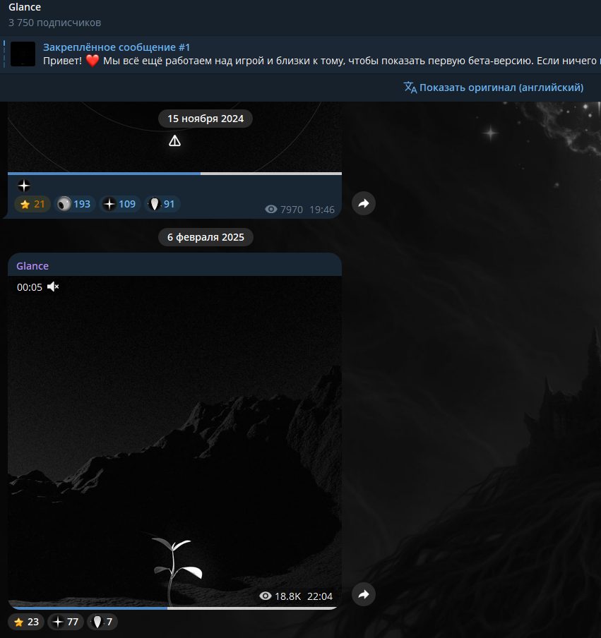 Судя по ранним записям, Glance Game в Telegram разрабатывали достаточно долго, даже слишком, учитывая не особо широкий функционал. Первые посты еще появлялись в 2024-м году.