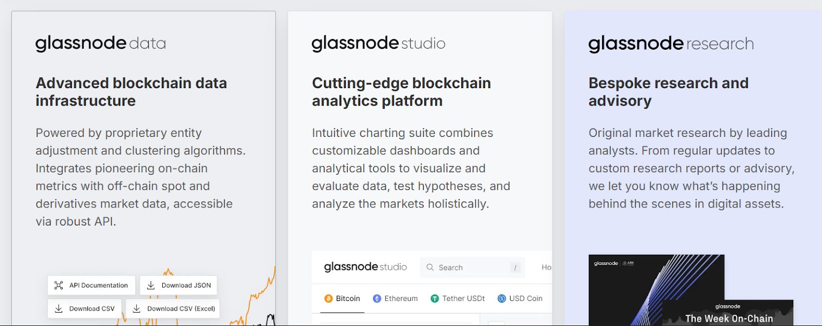 «Глассноде» дает API, через который можно интегрировать данные в собственные модели, системы или стратегии торговли. Здесь можно выгружать метрики, экспортировать информацию и использовать ее для последующего анализа. Платформа публикует свои исследования, рыночные обзоры и аналитическую отчетность от экспертов. Можно подписаться на периодические рассылки и отчеты. Они сейчас доступны в виде сообщений через электронную почту, а также через веб-интерфейс.