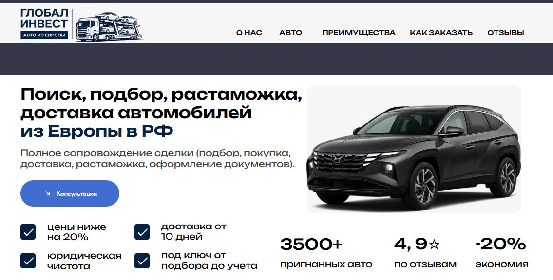 Компания из Курска Глобал Инвест Перегон Машин из Европы в РФ отзывы на независимых площадках не получила. Но, со слов владельцев, их фирма довольно успешная, они более 10 лет на рынке, привозят авто в очень короткие сроки, до 2 недель, по стоимости на 20% ниже рыночной. На все машины якобы есть юридические гарантии и сделки оформляются документально. Мы проверили всю информацию о Global Invest Auto, условия пригона, цены, законность оказания услуг — выводы в конце обзора.