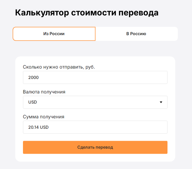 На платформе есть калькулятор стоимости переводов. При переводе средств в Россию или из нее, нужно указать сумму отправки и валюту получения. Сумма получения автоматически подсчитывается. Из-за отсутствия отзывов о GloryPay, безопасность операции остается под вопросом.