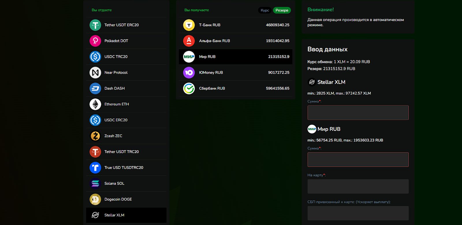 Резервы у команды также внушительные и превышают 100 миллионов рублей, но команда работает неофициально, без лицензий и сертификатов. Как правило, официальным обменникам поддержку и резервы оказывают поставщики ликвидности, которые заинтересованы в повышении торгового объема, однако здесь ситуация иная. Также важно отметить, что в интернете есть платформа Golden77 com, которая очень близка по названию с обменником, но на деле это казино, а между ресурсами нет никакой связи.