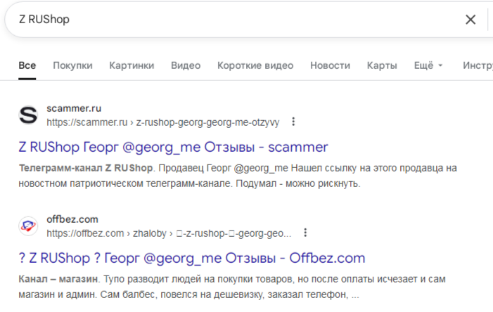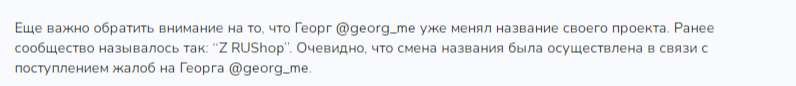 В этом же разоблачении рассказывается, что данный блог раньше назывался Z RUSHOP. Георг его сменил якобы из-за того, что он начал получать много негатива. В интернете под этим названием источник действительно имеет несколько разоблачений.