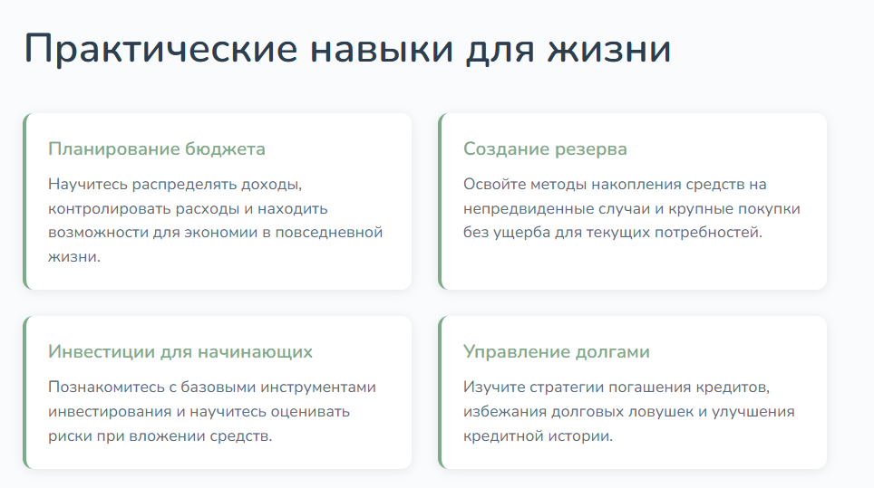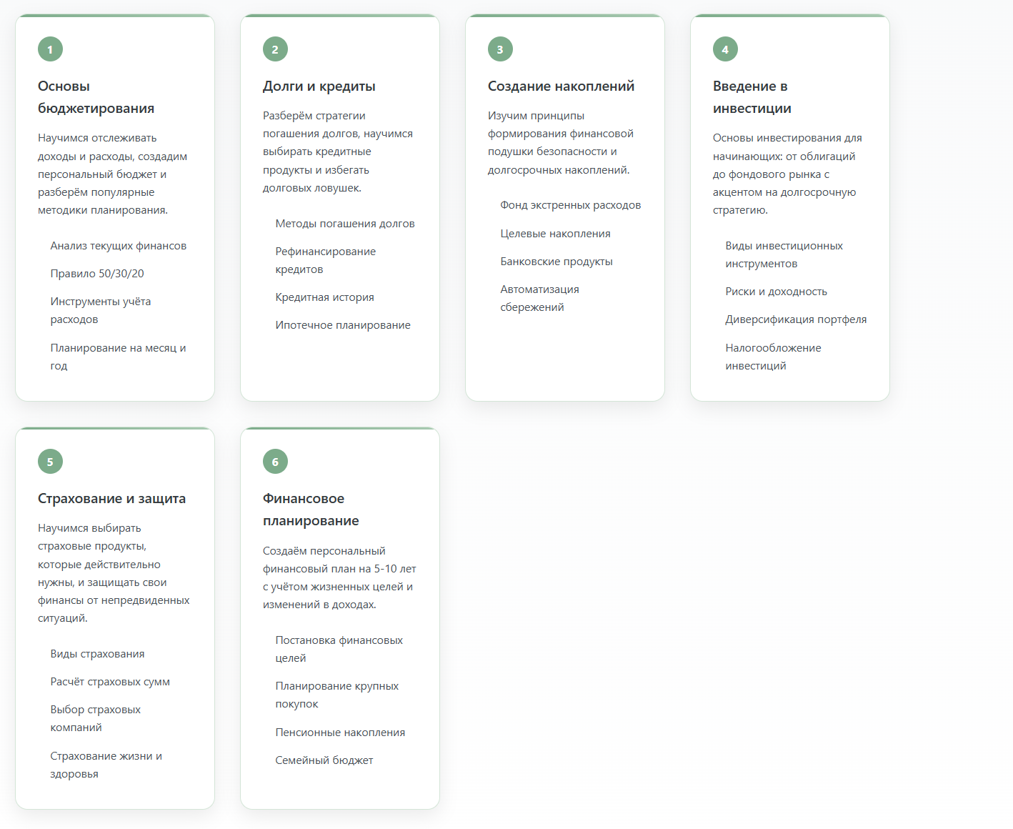 - Управление задолженностью — изучение особенностей выплаты кредита, защита от долговой ямы и улучшение кредитной истории.