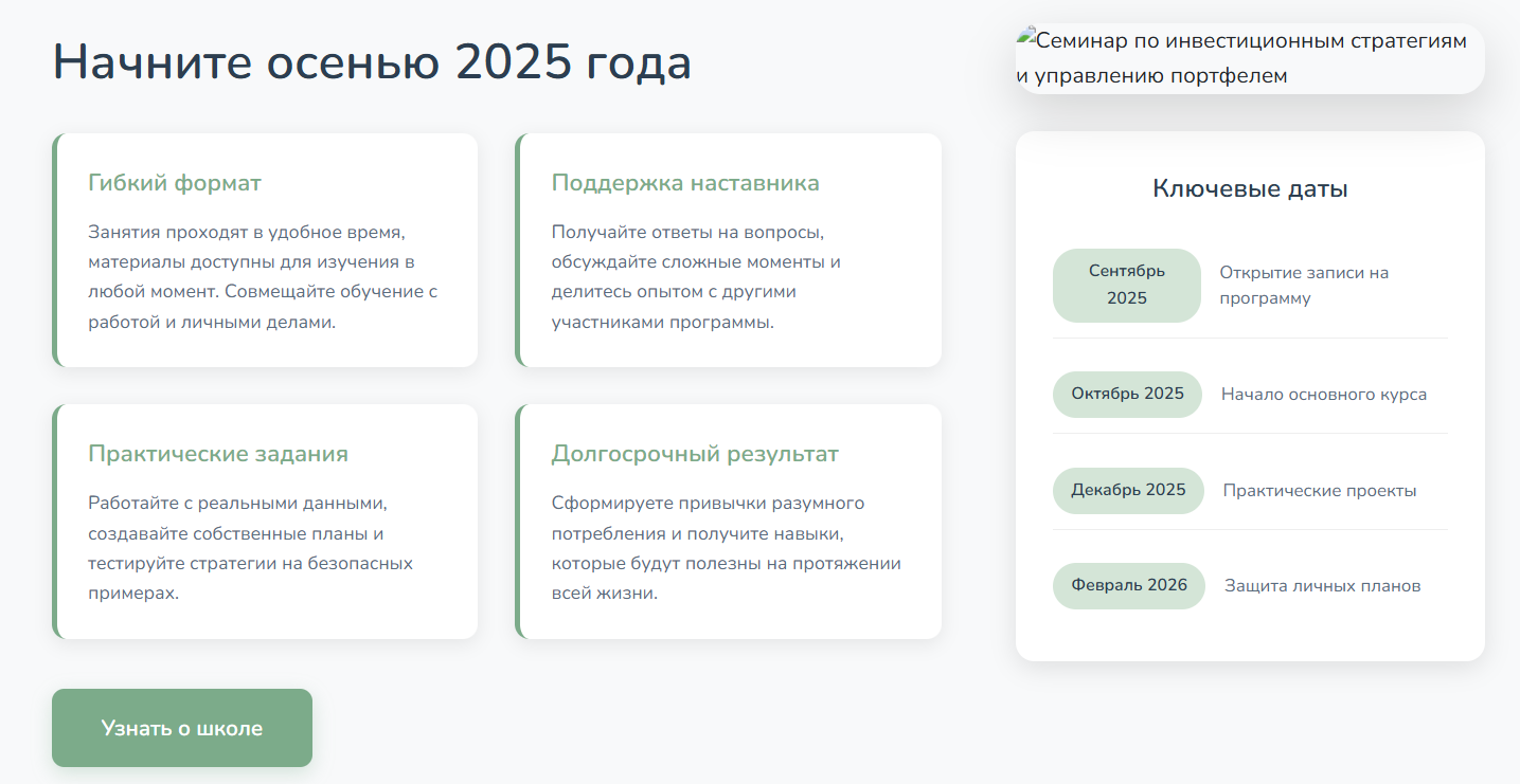 - ввод в инвестирование с рассмотрением видов инструментов, рисков, диверсификации портфеля и оплаты налогов;
