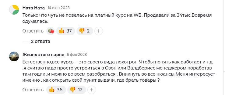• Высокая стоимость обучения при наличии бесплатной информации в справке самого Wildberries.