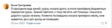 Этих курсов по освоению навыков ведения бизнеса на ВБ уже столько, что можно и за 5 тысяч найти, но никак не за 80 покупать у Григорьевой. Что ж она там такого нового расскажет на потоке, чтобы платить ей такие деньги?? Я знаю ответ — ничего. К тому же ниша ВБ уже переполнена менеджерами, с трудоустройством будут сильные проблемы.