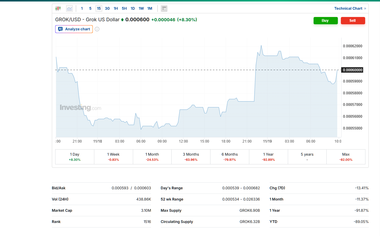 В отличие от некоторых мем коинов, которые используют налоги на покупку или продажу для финансирования разработки, Grok Coin не имеет транзакционных налогов. Этот токен – спекулятивный актив, не имеющий структурированной экосистемы.