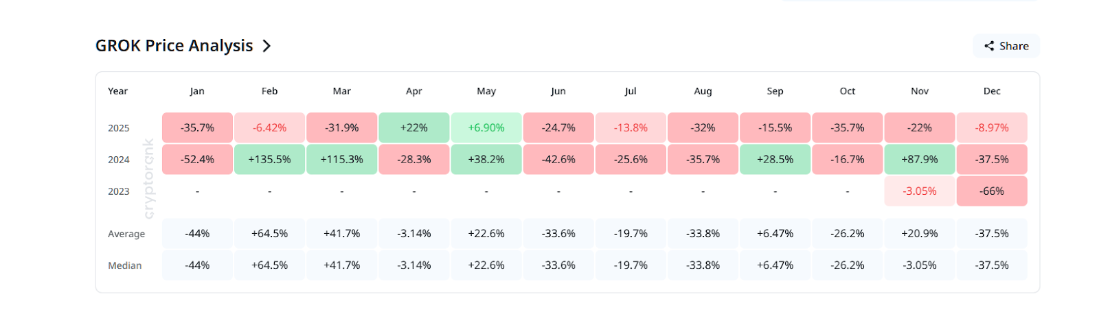 Многие сравнивали «Грок токен» с Dogecoin, Shiba Inu, но Grok не предлагал холдерам логичной структуры. Не были представлены команда разработчиков, дорожная карта, перспективы развития.
