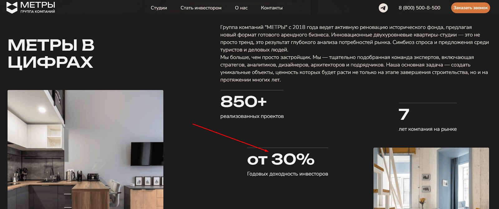 Согласно информации на сайте, указанная фирма из СПБ делает ремонт и продает маленькие квартиры в центре Петербурга. Вот их схема: менеджеры скупают многокомнатные объекты в центре, переделывают их в студии по 18–25 м², а затем продают инвесторам за 7–10 млн рублей. Покупателям гарантируют доход от аренды до 30% в год.