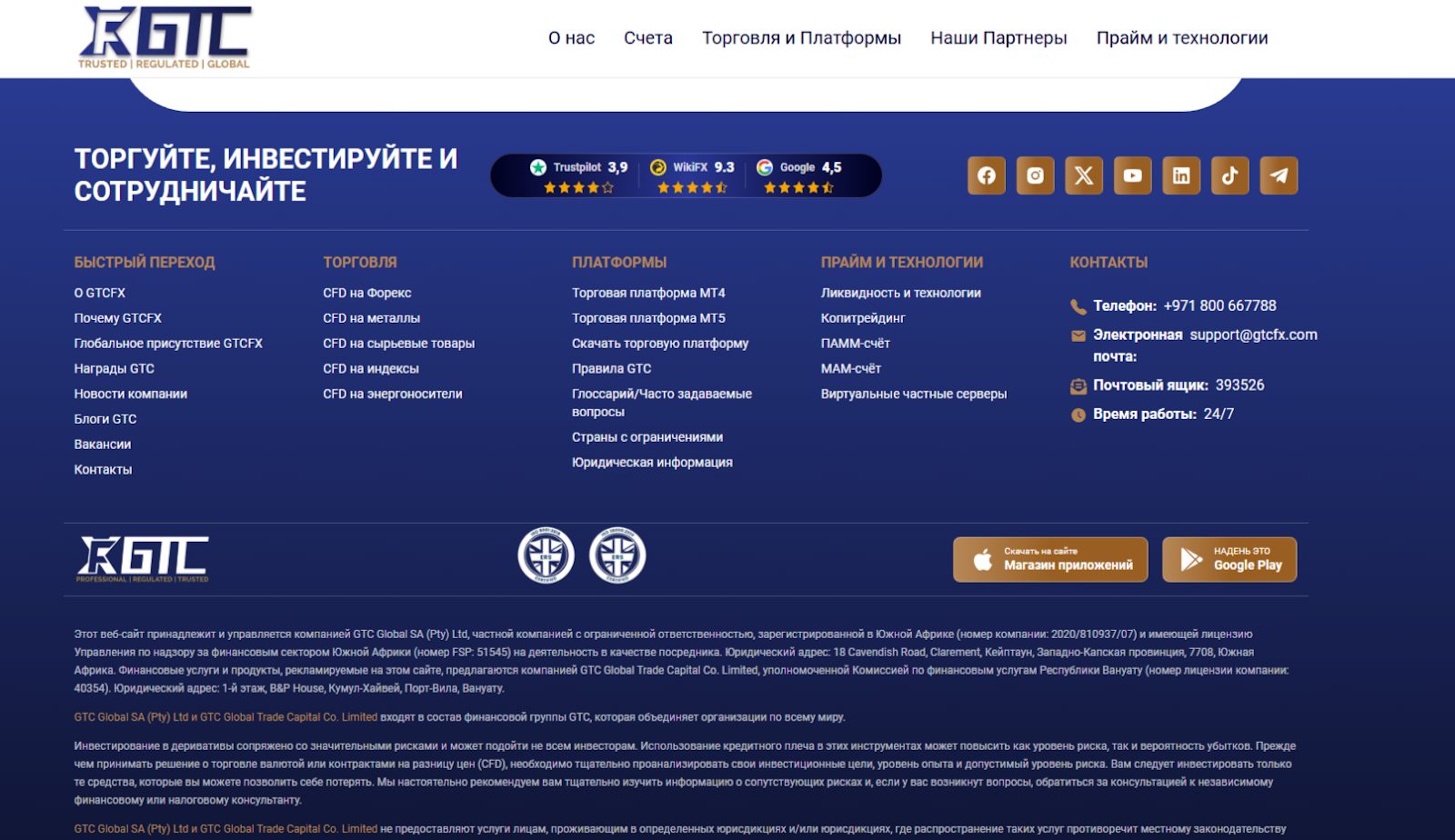 Оригинальность веб-сайта подтверждают и рекламные каналы посредника на Ютубе GTCFX Global Official (gtcfxofficial), в Фейсбуке gtcgroup official, Телеграме gtc vip signal и других социальных сетях. На упомянутых ресурсах можно обнаружить ссылки на портал gtcfx com. На основании полученной информации можно утверждать, что владельцы домена gtc ru com присвоили чужое имя и занимаются откровенным обманом.