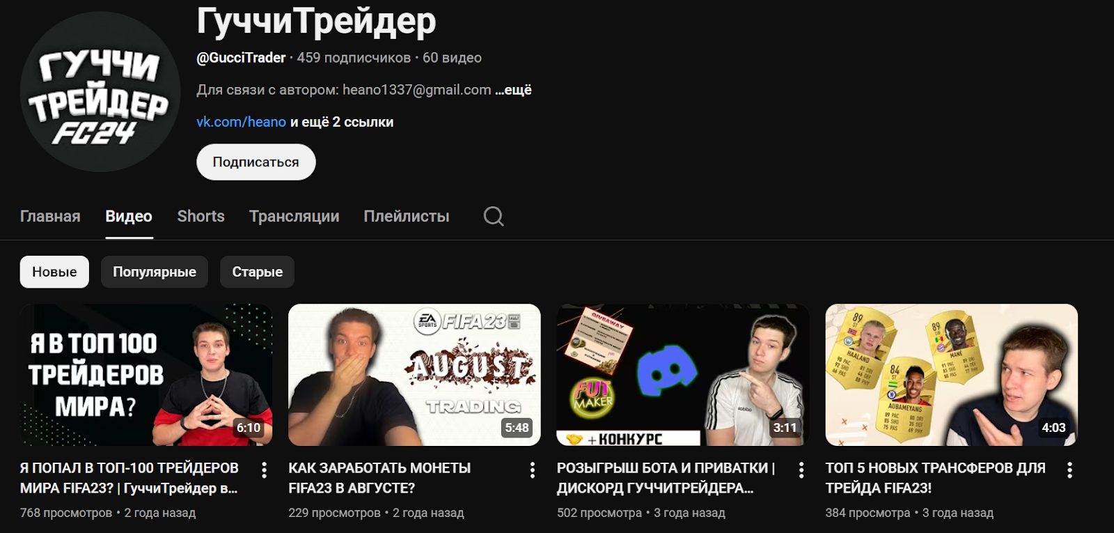 Ютуб-канал, который ведет Guccitraderr, набрал всего 459 подписчиков. За все время работы было выложено 60 роликов, которые собрали почти 37,2 тысячи просмотров. Площадка существует с 2017 года. Здесь проводятся стримы.