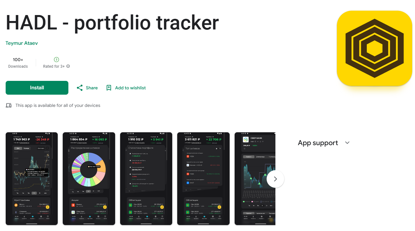 Hadl app не является брокерской платформой, сервис выступает в качестве инструмента для эффективного отображения и аналитики данных из портфеля клиента. С помощью трекера можно планировать будущие инвестиции, рассчитывая предполагаемую прибыль. Отзывов о трекере мало, однако разработчики постоянно оптимизируют возможности проекта, публикуя отчеты о произведенных улучшениях.